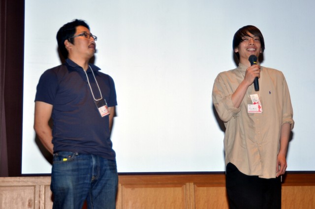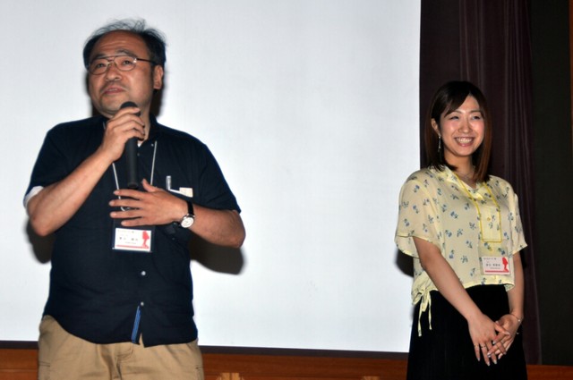 荒井智晴プロデューサー この作品は、日本と中国の合作映画になります。監督の張大尉は、私が中国に留学していた時に知り合った同期なんですけど、ずっと「いつかもう少し能力を高めたら、一緒に作品を作りたいね」という話をしていて、ようやく去年の段階で動きはじめたんです。監督は今28歳ですけど、それくらいの世代の人は大体日本の文化が大好きで、特にサブカルの分野に影響を受けてる方が多いんです。監督が大好きな『エヴァンゲリオン』や『ドラえもん』をモチーフにキャラクタ造型を取り組みまして、この作品が出来上がりました。この作品には別のエンディングもありまして、もう少し長いバージョンもあるんです。どうしてもこの映画祭に出したかったもので、少しショート・バージョンにするにはあそこで切るしかなかったという苦渋の選択ではあるんですが、楽しんでいただけたなら本当に嬉しいです。