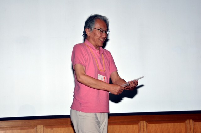 山村もみ夫。監督 監督と……あと、テーマソングを歌ったりしています(笑)。「いのちの重さ」をテーマに今回作ってみたのが、『アパートメントコンプレックス』という作品だったんですけど(場内笑)……そのテーマまで、きちんと読み取っていただけたお客様が何人くらいいらっしゃるか分かりませんが、伝われば良いなという思いで、今日は岐阜まで来ました(場内笑)。ちなみに、最後に蛇足感がありましたが……北海道に招待していただいた時に作って、後からくっ付けたんです。……要らんかったかな、とも思いますが(場内笑)。でも、「北海道民あるある」だったので、向こうではウケました(笑)。
