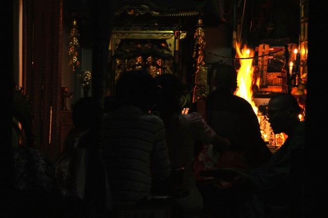 うでわ念珠づくりと、朝だけでなく夜間にも焚かれた護摩祈祷は、沢山の参拝客を集めた。