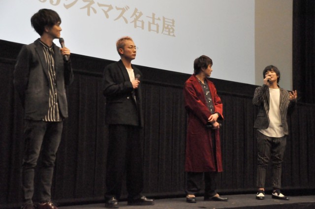 全国公開を記念し、名古屋発のエンタテイメントグループ「BOYS AND MEN」の水野勝(『結婚の条件』)、田中俊介が(『ツチノコの夜』)、小林豊(『ジャンクション』)、本田剛文が(『バズる』)が、2月24日(日)、109シネマズ名古屋(名古屋市中村区平池町)で舞台挨拶に立った。