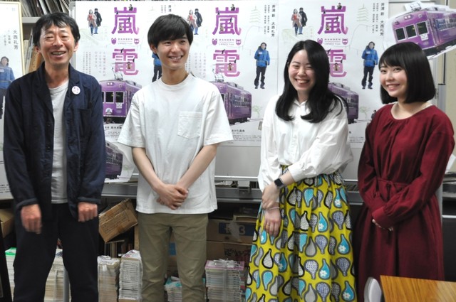 鈴木卓爾監督 自分はそもそも西日本に縁がなかったんですけど、中学時代に修学旅行で訪れたくらいで京都とは縁が全然なかったんですね。どういう訳かおかげ様で京都で映画を撮るということになった時に、やはり怖かったので……願掛けをしようと思いまして。京都の町というのは、空、宇宙をそのまま地面に写し直してるような、風水的にデザインされてる町だと感じたんで、今回の登場人物も星に因んだ名前にしたかったんです。今回の企画は、一応「恋愛映画を撮ってくれ」という依頼で考え始めていて、うちの大学(京都造形芸術大学)の「北白川派」って映画運動と繋げたんです。恋愛映画も色々ありますけど、「京都の恋愛映画」となった時に、文学的な映画ではない何かが出来ないかと思って。京都を舞台にした文学作品は多いような気がしますが、映画らしい恋愛映画にしたいと考えたんです。それで、人の時間と、人を上回るもっと大きな何かの時間、その間を、ちょっと人よりも長い尺度で走っている電車というものが繋げるような。そういうストーリーにするということでは無いのですが、映画の風味として……ちょっと星巡りを感じさせるような気持ちで、星に因んだ名前が良いかと思ったんですね。営みの軌道、サイクルというのは、人それぞれで違っていて、人と人が交わったり、出会ったりするのは、本当に一瞬のことなのかも……昨日(5月25日)テアトル新宿の舞台挨拶をした時に、ようやく3つの恋愛が、3組のカップルの6人が初めて一同に介したんです。撮影中に一緒に会うタイミングは、一度も無かったんですよ。群像劇の部分があるので、全員が集まるシーンは元々無いから全然構わないんですけど、この6人が舞台挨拶で出会った時に、「映画はまだ完成してなかったんだ」、「これで本当に邂逅が起きたんだ」、「そこに今お客さんが立ち会ってるんだ」……そんなことを思って、やはり映画を完成させるのは、映画を観せる時だと実感しました。人の衛星軌道というのは本当に人それぞれなので、会ってる時間は束の間です。「私たちには時間があるようで無い」という台詞じゃないですが(笑)。