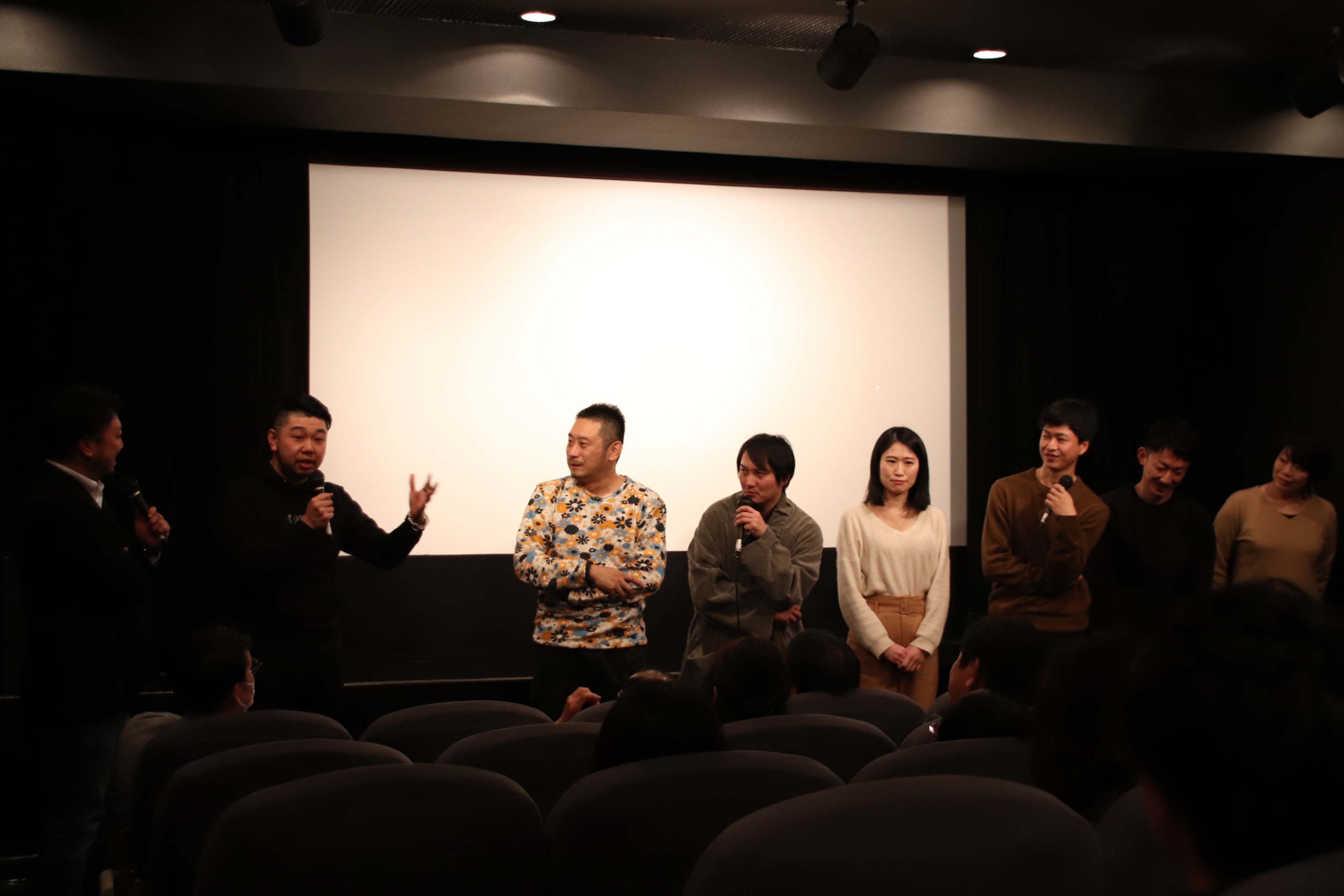 星能豊 今日は何故『センターライン』チームの皆さんに応援に来ていただいたかと言うと、僕は石川県の金沢で俳優活動をしてまして、『センターライン』は名古屋で撮影された映画です。色々な映画祭を回って下向さんと出会って、「僕を出してください」と言いまくったら、出していただけたんですね。下向さんも今は長野に住んでらっしゃるんです。倉橋さんは愛知県、涼夏さんは岐阜県に住んでらっしゃる。東京が敵とかいう訳じゃないんですけど、こうやって地方で活動している俳優たちにも坪井(副支配人)さんが光を当ててくれるのは、役者として凄くありがたかったんです。僕の特集上映というのも凄く嬉しいんですけど、他にも色々な所で頑張っている方たちがいることを、皆さんが広めていってくださればと思い、出ていただけないかと今回お願いしました。