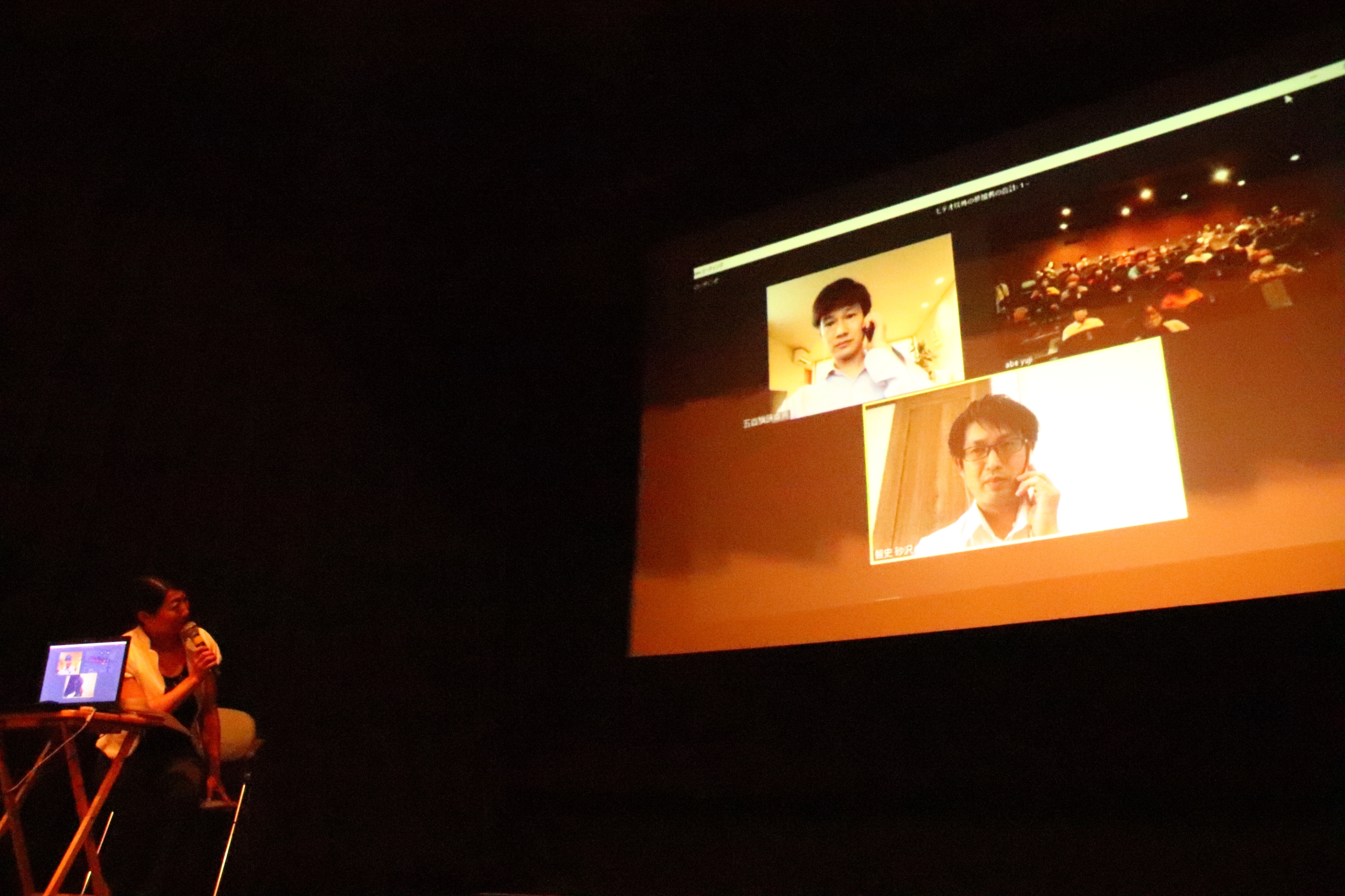 初回10:00の上映では、五百旗頭幸男、砂沢智史、両監督のリモート舞台挨拶が開催された。