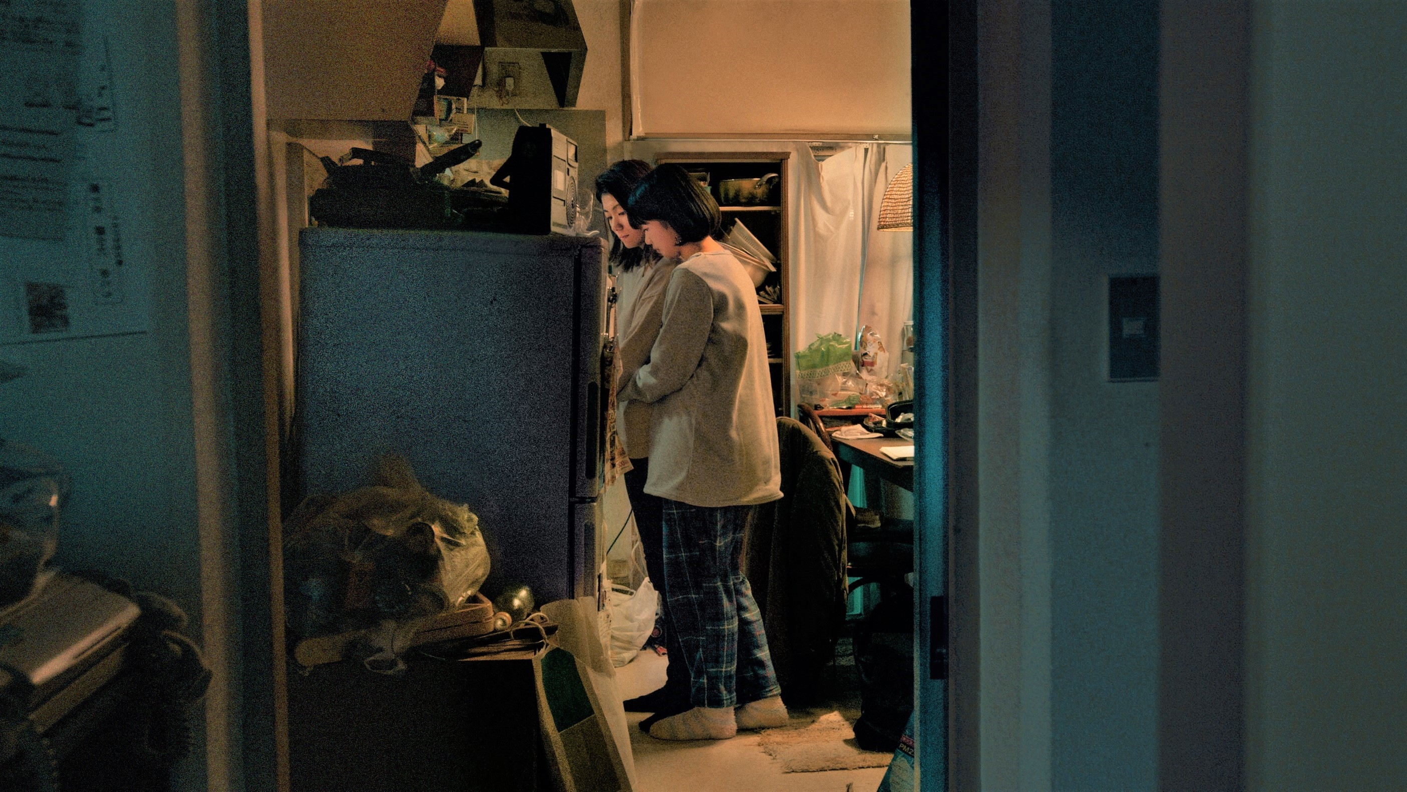 保険証を取りに行くため立ち寄った団地の一室は荒れており、萌と父(梅田誠弘)との生活を垣間見た由宇子は遣る瀬無い思いに駆られる。