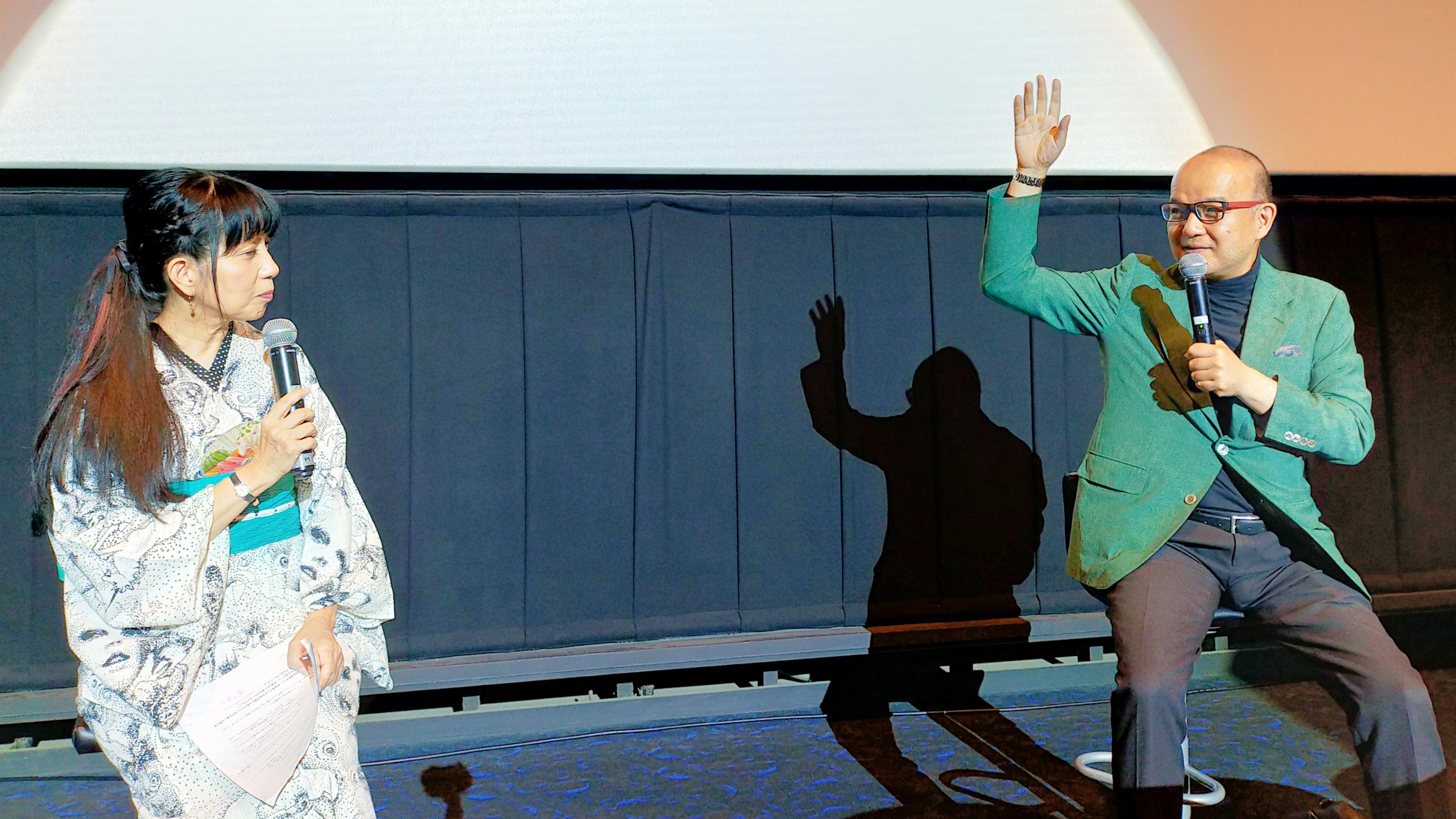 歌舞伎公演のイヤホンガイドで「同時解説」を担当されていたおくだ健太郎さんは、この日も観客席も巻き込んだ魅力あふれるトークを披露した。
