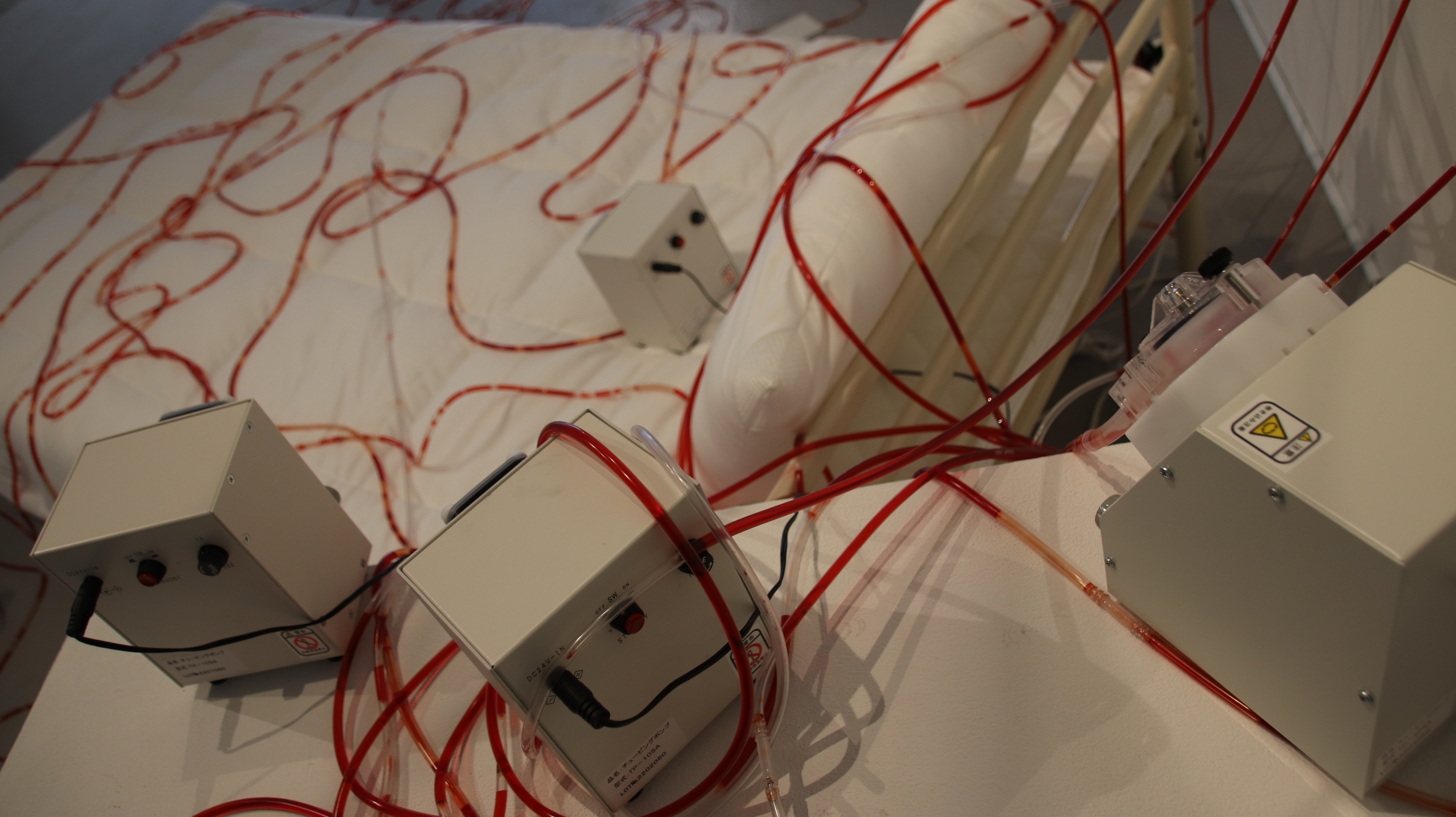 真白いベッドに、鮮血を思わせる赤い液体が、透明なチューブを通して、幾つかの小型ポンプで循環を繰り返している。