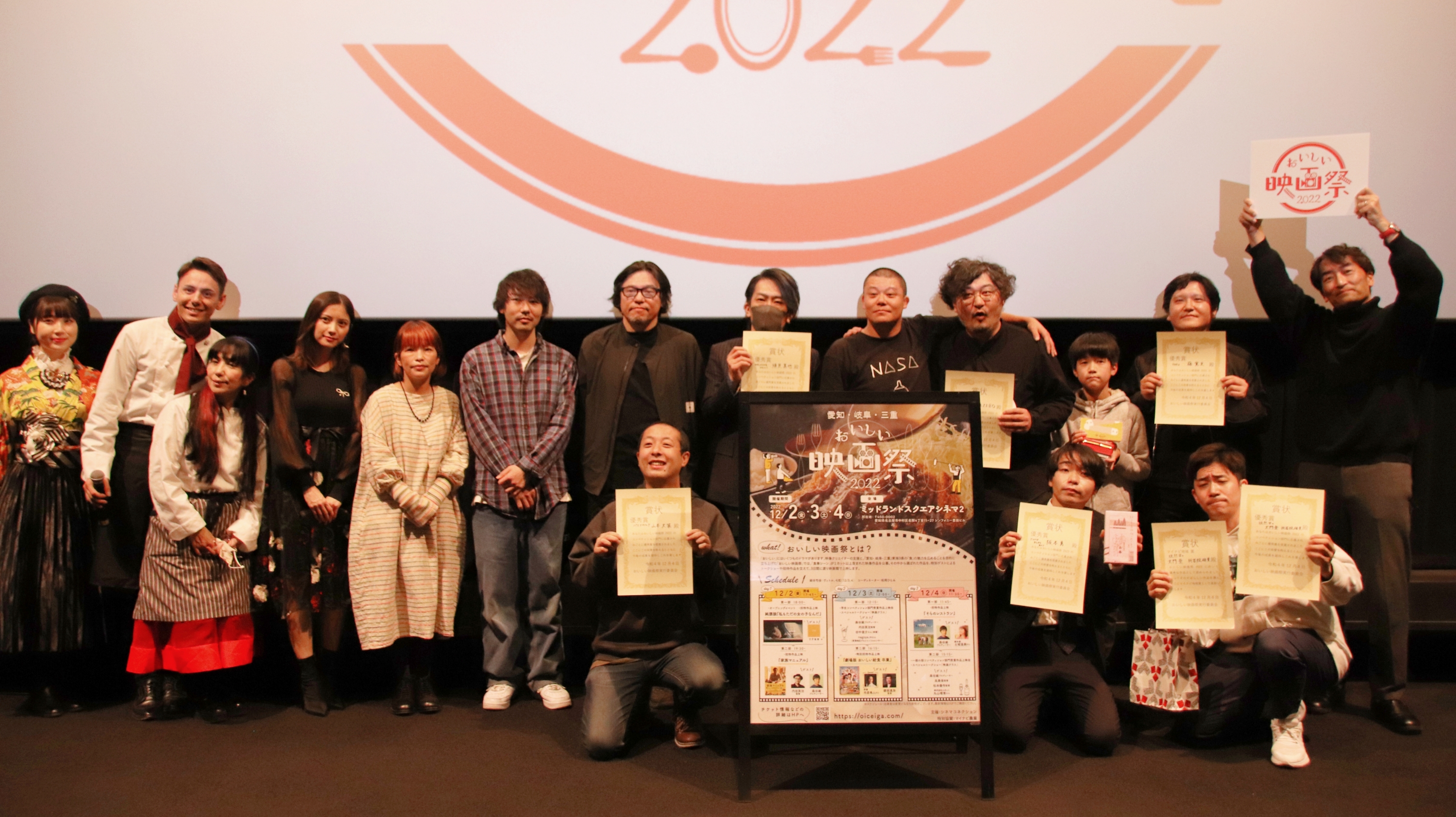 最終日3日目は12月4日(日)、ミッドランドスクエアシネマ2(名古屋市中村区名駅4丁目11−27 シンフォニー豊田ビル)スクリーン9はこの日も大勢の映画ファン、グルメファンで一杯となった。