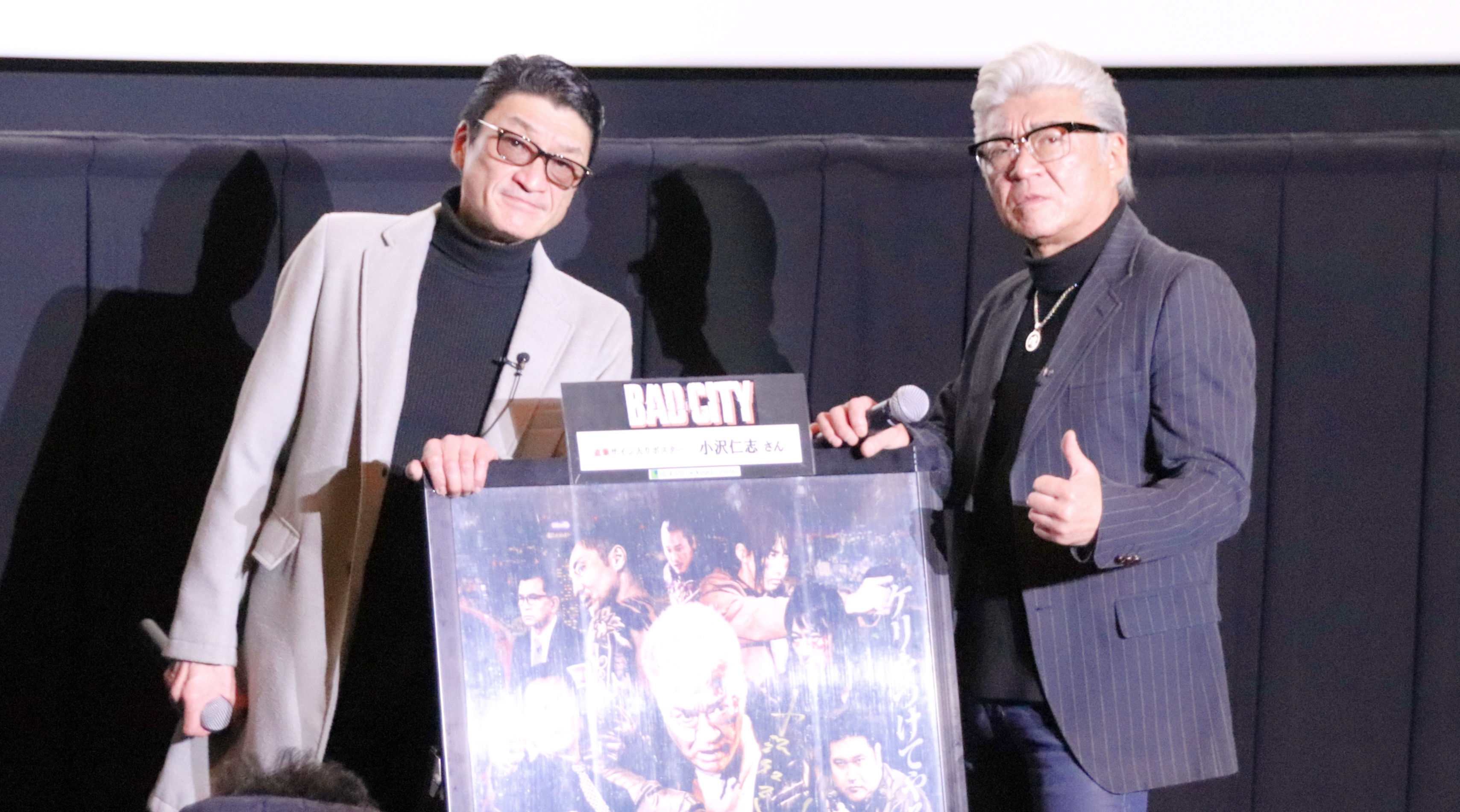 登壇は、小沢仁志(主演:虎田警部 役)、小沢和義(和刑事 役)という小沢ブラザーズとあって、スクリーン3は満席に膨れ上がった。