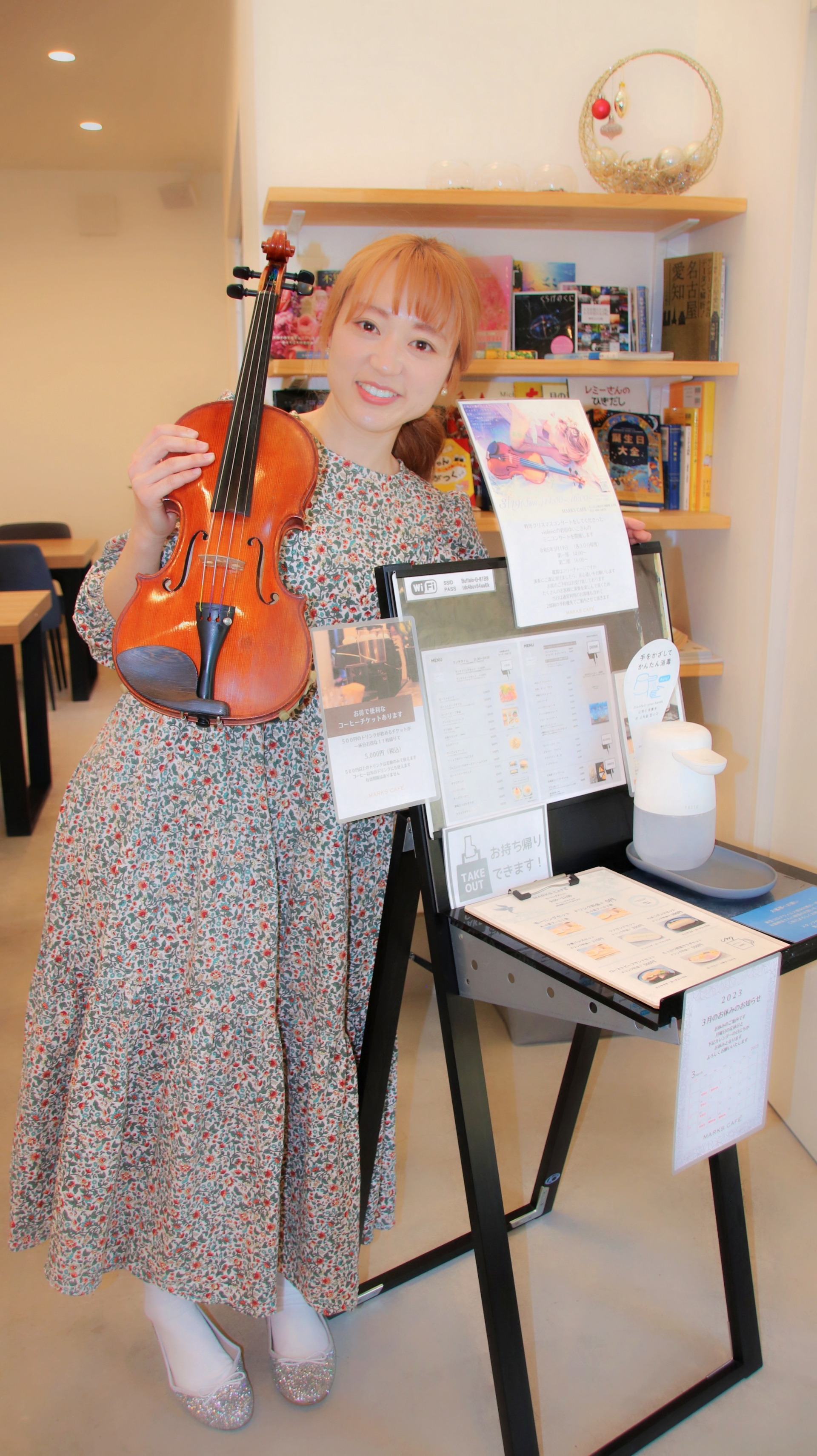 2023年3月19日(日)、MARKS CAFE(マークスカフェ/名古屋市熱田区西野町1丁目75)で、名古屋を中心に活躍するヴァイオリニスト・岩田ゆいこ(yuipu)のフリーLIVE【小さなヴァイオリンコンサート】が開催された。