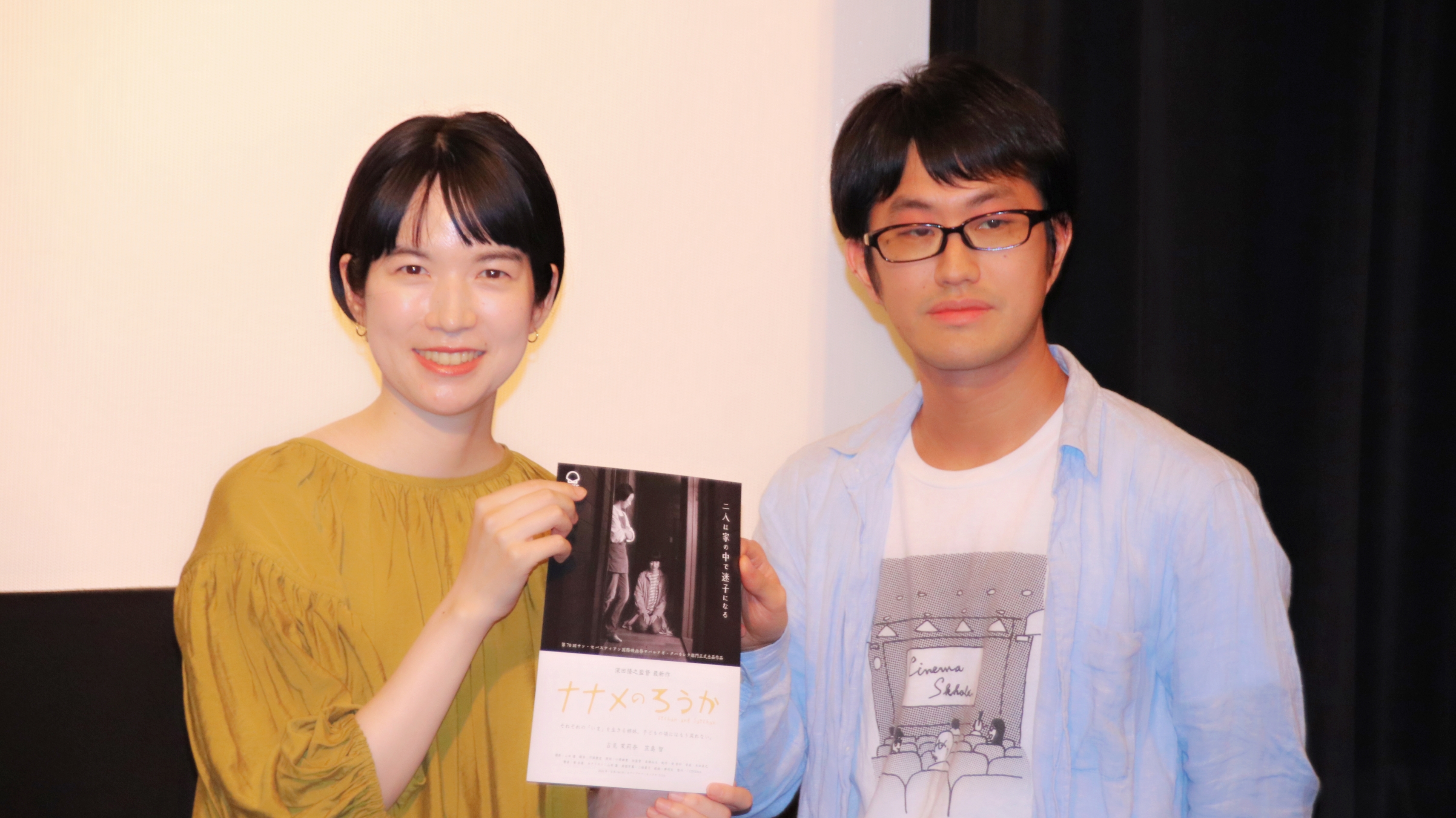 登壇したのは、深田隆之監督と、主演で愛知県出身の吉見茉莉奈さん。