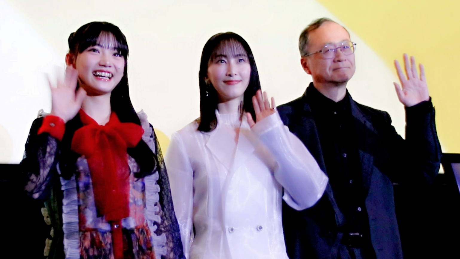 舞台挨拶に登壇したのは、金子修介監督、松井玲奈(東静 役)さん、星乃あんな(上間夏月 役)さん。
