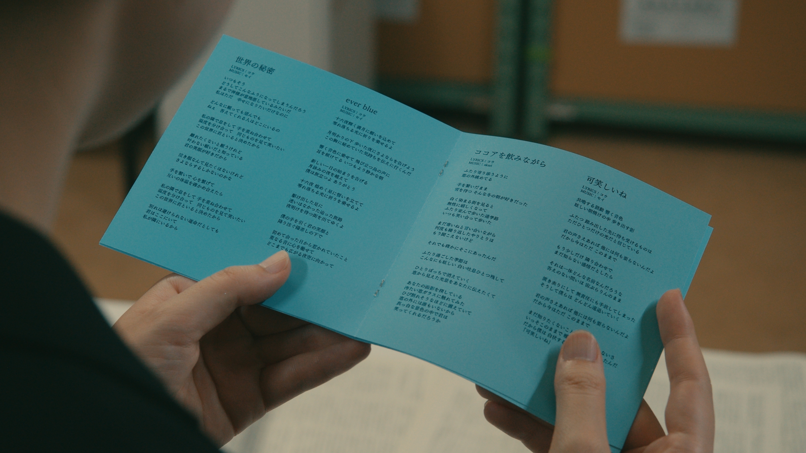 米子とテンは、yusquaメンバーであるセイ(小松原康平)・波玖(アビルゲン)・ケンゴ(松村光陽)・朱梨(辻瀬まぶき)、マネージャー高宮(澤真希)、そして目撃者である歌詞生成AIを「事情聴取」し、犯人に迫っていくーー。