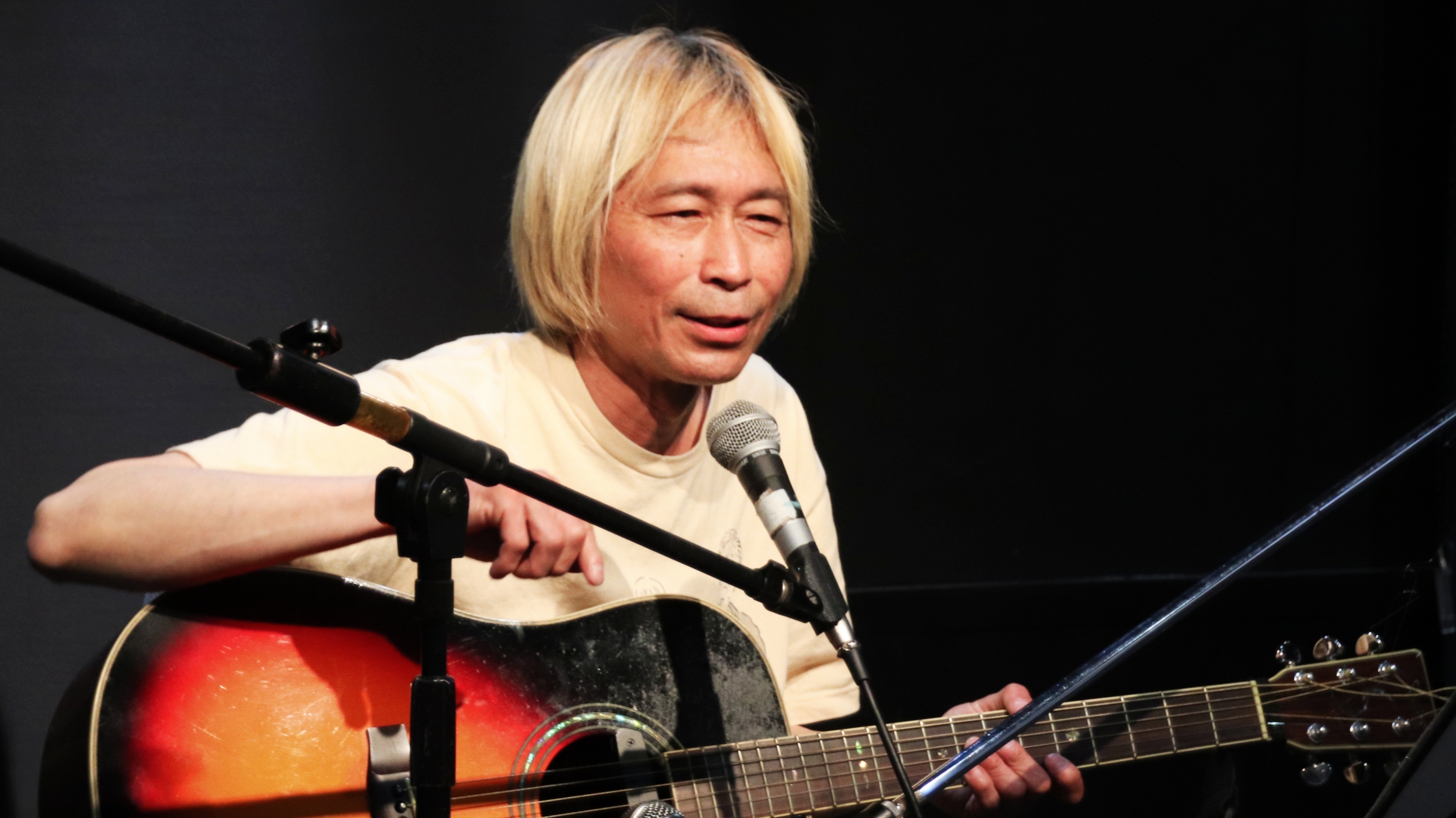 ステージに立ったのは、広島でソロの弾き語り、「ミカカとアカノタニン」のギターボーカルとして活躍するミュージシャン・ミカカ。