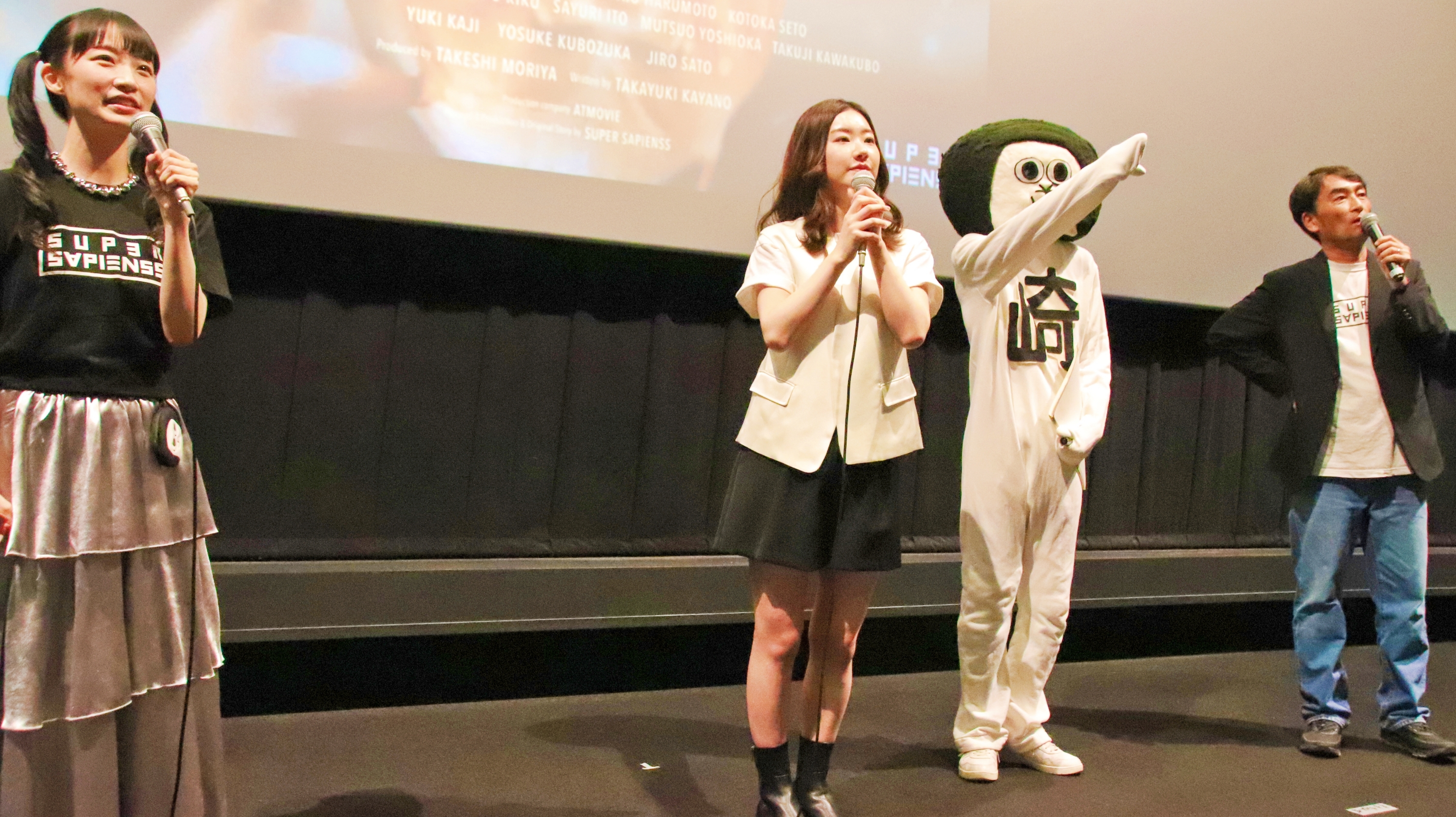 岡エリカ(主演:環栄李花 役)さん、伊藤さゆり(笹白趣美 役)さん、オカザえもん、森谷雄プロデューサーによる初日舞台挨拶を取材した。