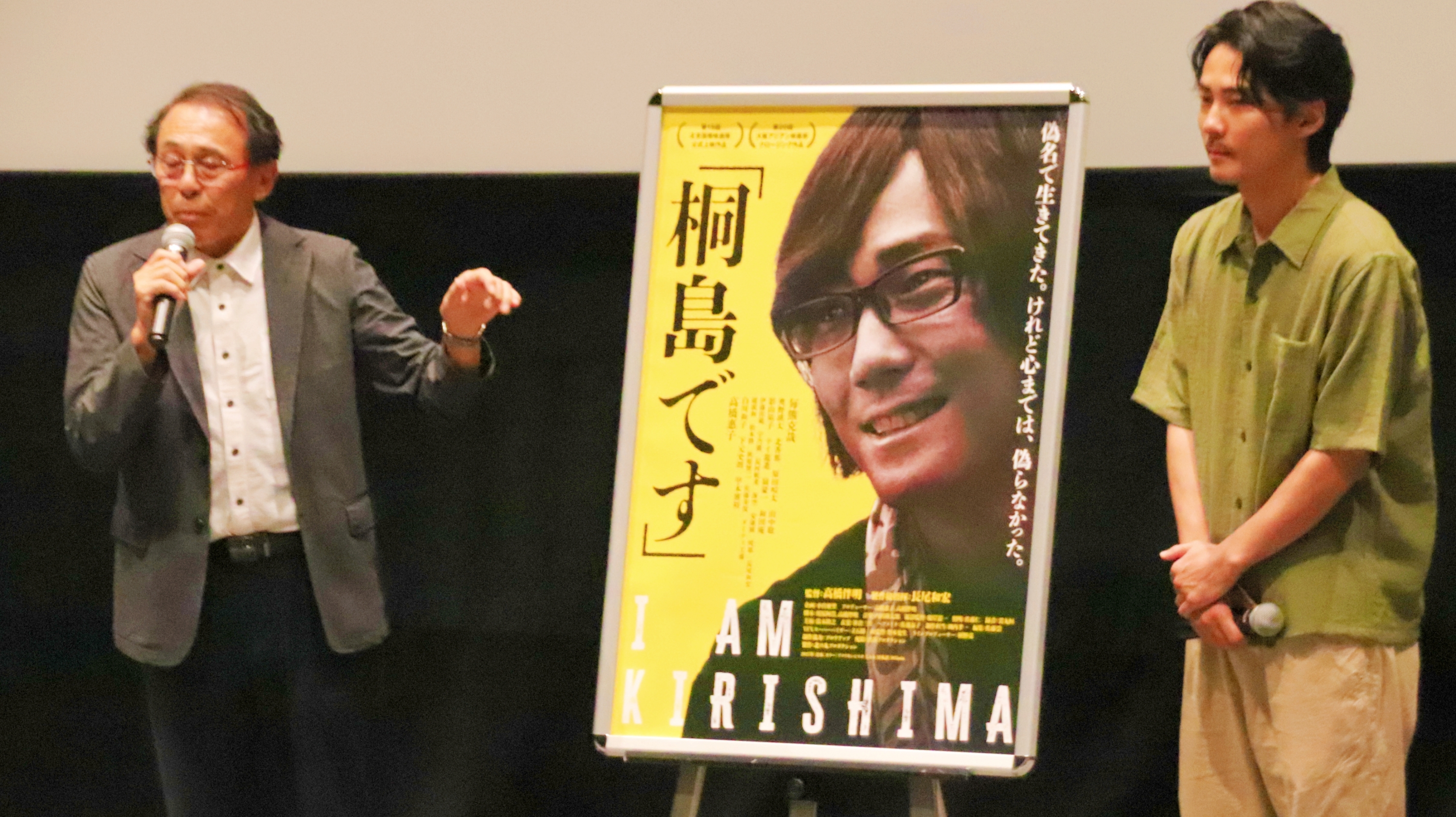 ほどなくスクリーンの前に登壇したのは、毎熊克哉(主演:桐島聡 役)さんと、医師の長尾和宏(製作総指揮)さん。