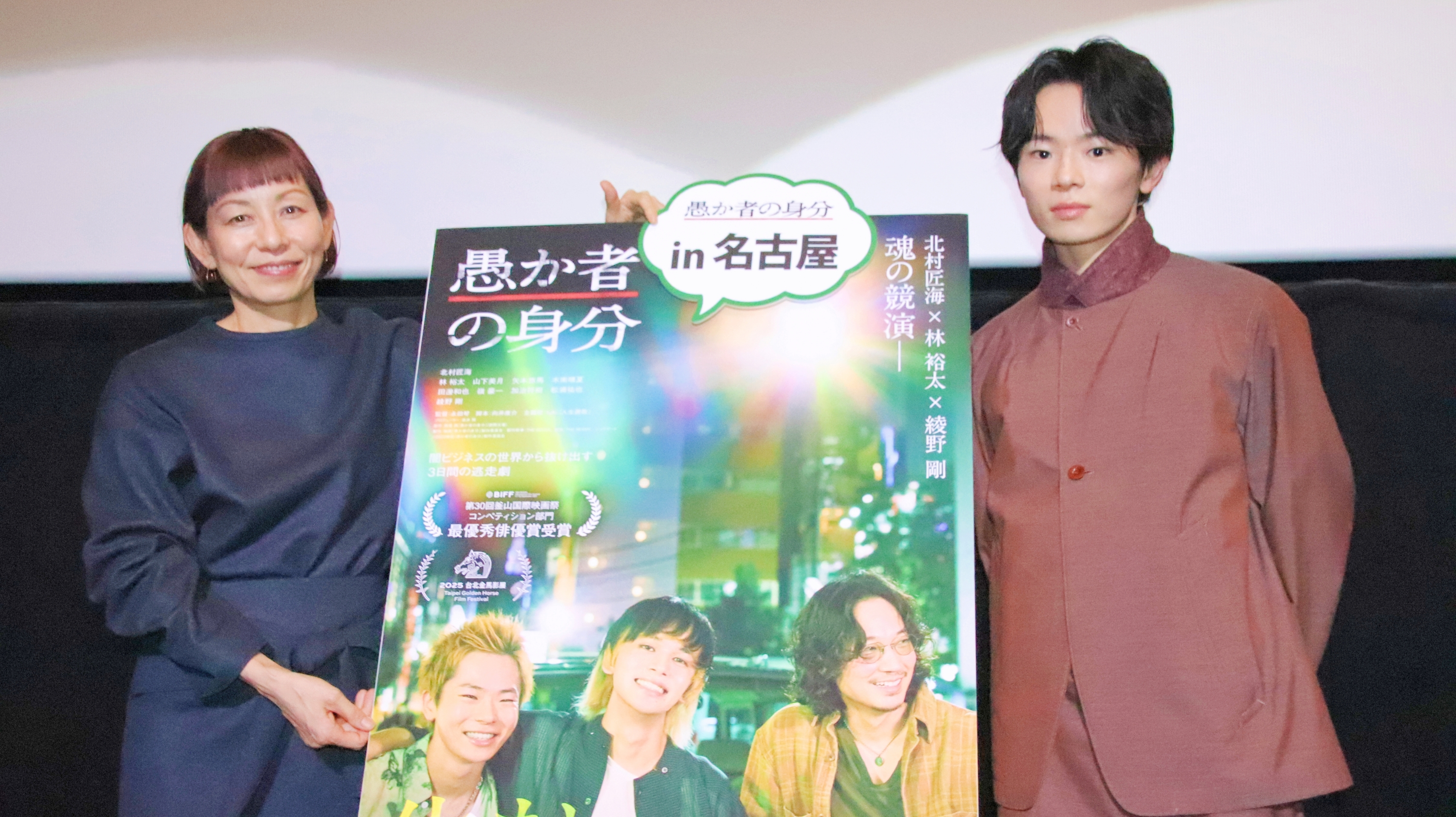 上映後のスクリーンに登壇したのは、主演の一人であるマモルを好演した林裕太さんと、本作で初の男性が主人公の映画に挑んだ永田琴監督。